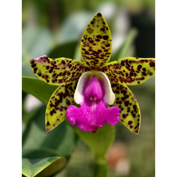 Cattleya Aclandiae là dòng lan mini nổi bật với nền xanh vàng phủ đốm nâu đen ấn tượng, môi tím hồng rực rỡ – nhỏ gọn nhưng cực kỳ nổi bật và sang trọng.