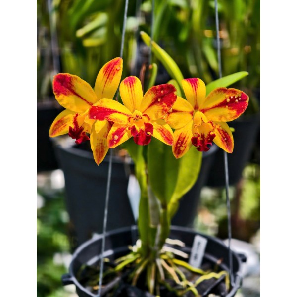Rth. Barefoot Mailman ‘Rainbow’ là giống lan Cattleya lai nổi bật với nền vàng tươi kết hợp các vệt đỏ rực như lửa cháy trên cánh hoa. Màu sắc tương phản mạnh tạo nên vẻ đẹp nổi bật, độc đáo và rất được ưa chuộng trong giới sưu tầm lan Cattleya.