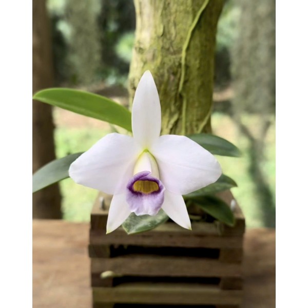 L. praestans coerulea nổi bật với sắc trắng tinh khôi kết hợp họng tím lam đặc trưng, mang vẻ đẹp thanh lịch và hiếm gặp trong giới lan sưu tầm.
