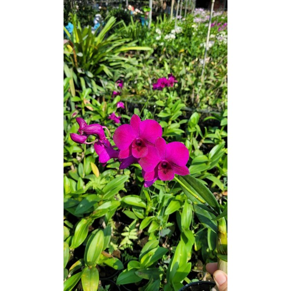 Den Đỏ Tím Đậm Hoa To Hồ Điệp là một dòng Dendrobium lai nổi bật với hoa to mang màu đỏ tím đậm rực rỡ, có hình dáng tương tự như hoa Hồ Điệp (Phalaenopsis). Loại lan này được ưa chuộng nhờ màu sắc quyến rũ, kích thước hoa lớn, và khả năng nở hoa dày đặc.