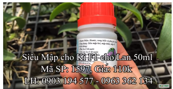 Sản phẩm siêu mập Ki F1 này là một sản phẩm hoàn toàn mới, được sản xuất tự phát lưu hành nội bộ trong việc trồng lan. Nếu các bạn nào có nhu cầu mua sản phẩm mới dùng thử thì Mai Huy khuyên các bạn không nên dùng trên những cây đắt tiền, cây sưu tầm, mà nên dùng trong những cây thường như Dendro hay Cattleya….. Khi thấy hợp rồi chúng ta mới dùng rộng rãi nhé.