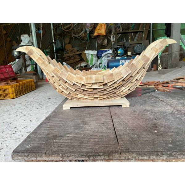 Chậu thuyền gỗ ghép thủ công độc đáo, form uốn cong mềm mại như con thuyền ra khơi. Có 3 kích thước 45cm – 65cm – 1m, phù hợp trồng lan, bonsai, tiểu cảnh hoặc decor không gian sân vườn – quán cafe – homestay.