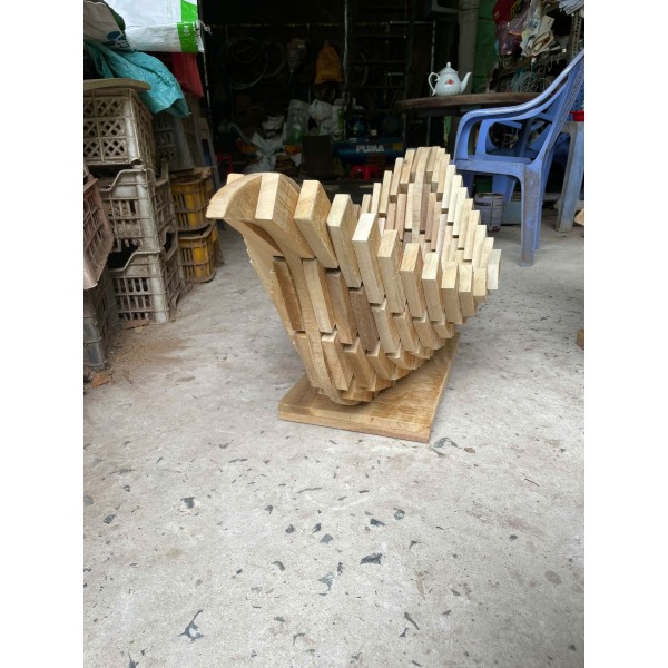 Chậu được ghép từ các thanh gỗ tự nhiên, tạo hình uốn lượn chắc chắn, vừa mộc mạc vừa nghệ thuật.