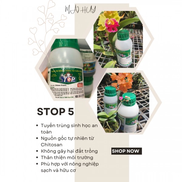 – SINH HỌC LƯU DẪN For Organic Gardening Thuốc trị tuyến trùng stop 5SL nhờ hoạt chất chitosan chiết xuất từ thiên nhiên nên rất an toàn cho cây trồng và người sử dụng.